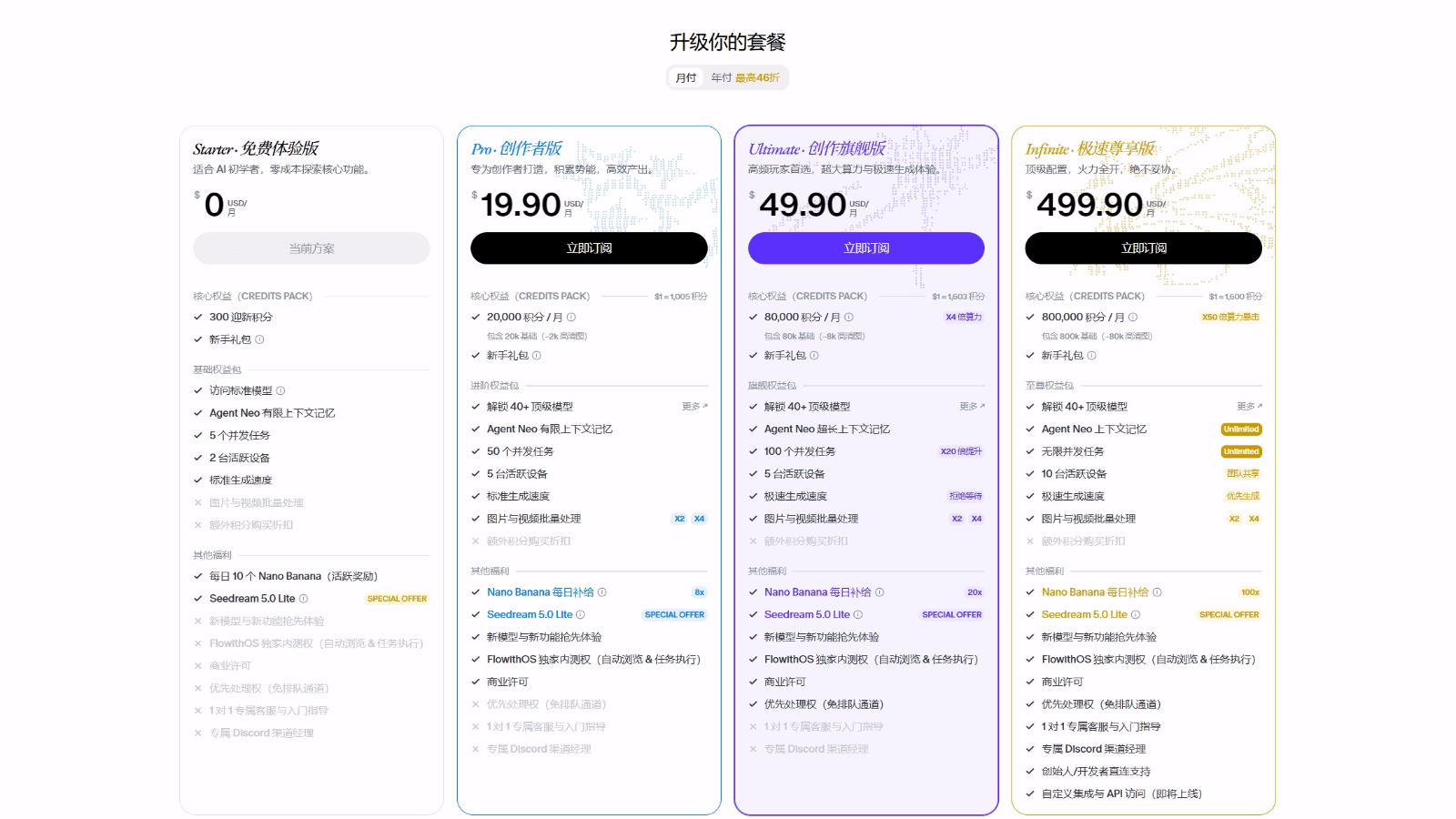 Flowith ultimate 长期订阅方案